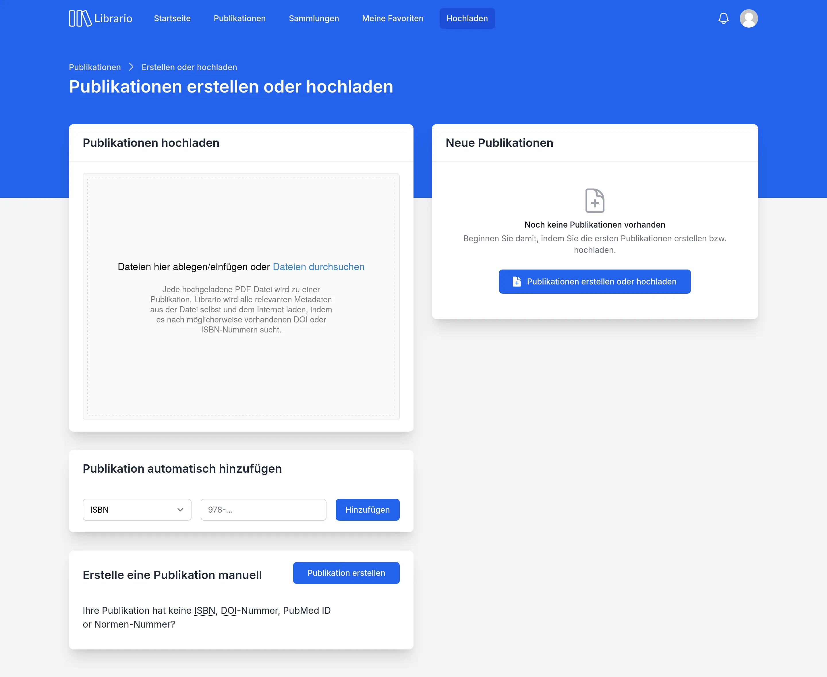 Librario verarbeitet die hochgeladenen Dateien automatisch und extrahiert die verfügbaren bibliografischen Informationen.